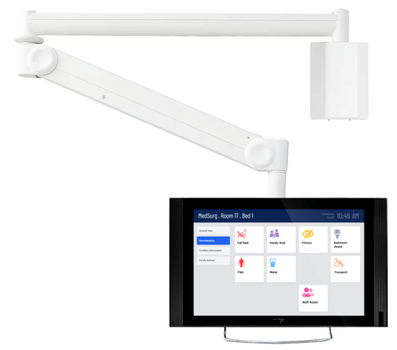 One of the Intelligent Hospital Capabilities is Integrated Bedside Technology, and we can provide this by use of our Application Station, which is a touchscreen device that can be mounted on an articulated arm.